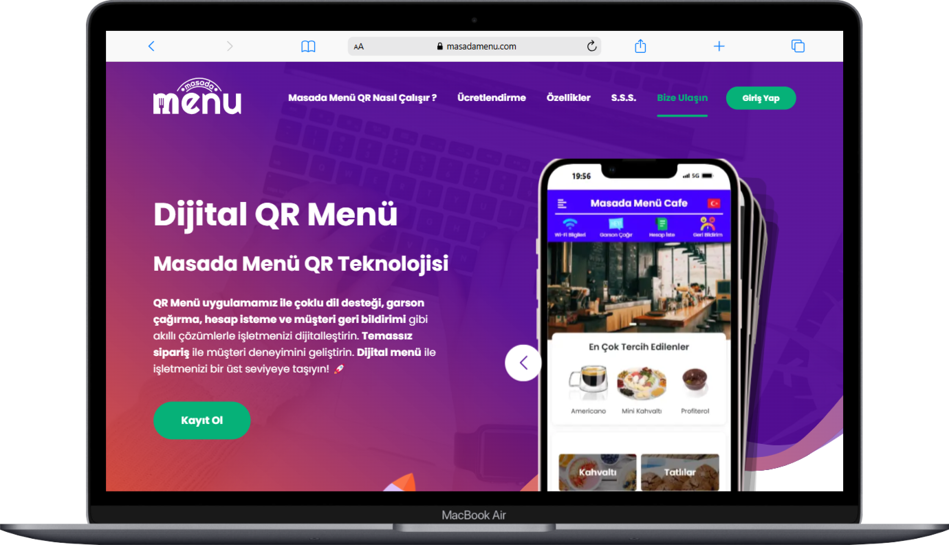 MasadaMenü, restoran ve kafeler için modern, hijyenik ve etkileşimli bir menü deneyimi sunar. QR kod erişimiyle sipariş sürecini hızlandırır, müşteri memnuniyetini artırır ve işletmeler için maksimum verimlilik sağlar.